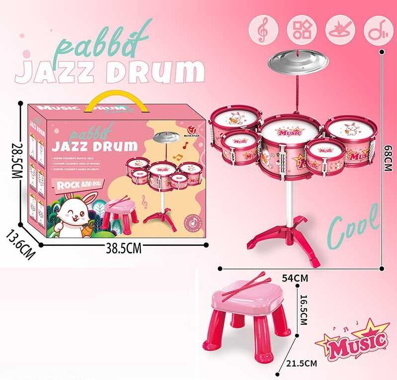 Барабан M 4203 (10) КОЛІР РОЖЕВИЙ, 3 барабани, тарілка, палички, стільчик, в коробці